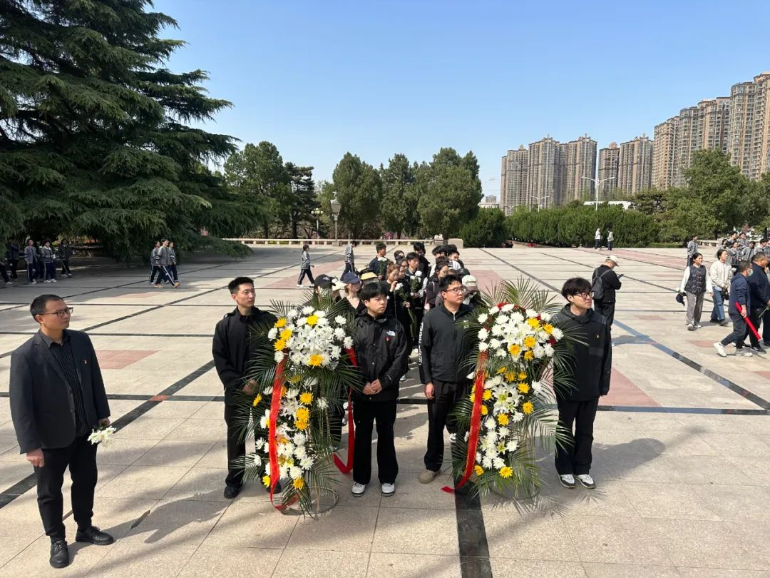苍松翠柏映丰碑,庄严肃穆寄哀思。在革命烈士纪念碑前,全体人员整齐列队,行注目礼,向英烈默哀致敬。学生代表缓步上前,向烈士敬献花篮并整理缎带。随后,师生共同参观中原英烈纪念馆,通过《京汉铁路工人大罢工》等主题展陈,深入了解"二七"英烈用生命诠释忠诚的革命事迹。一件件珍贵文物、一幅幅历史图片、一段段感人视频,让青年学子仿佛置身于血与火的峥嵘岁月。