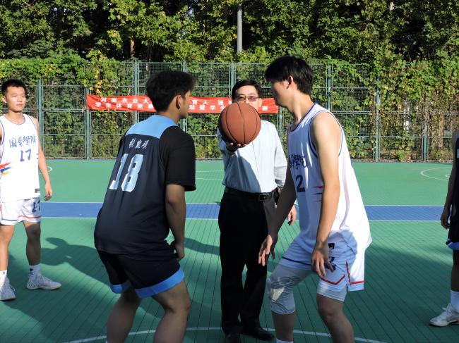 “以体育人 强智健体”系列活动首届篮球比赛开幕,并主持跳球。各博彩游戏