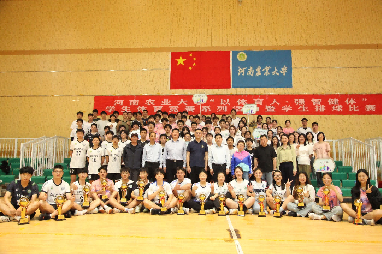 最后,获奖运动员与参加颁奖仪式的领导合影留念。此次校学生排球比赛圆满落幕。