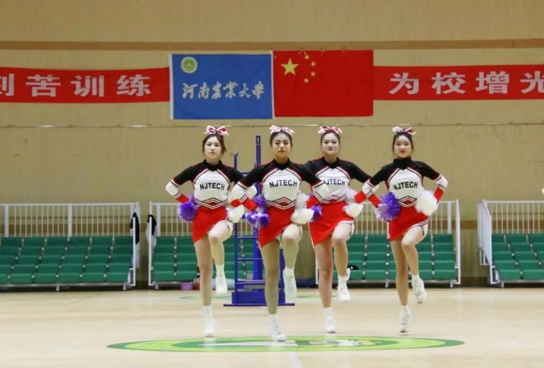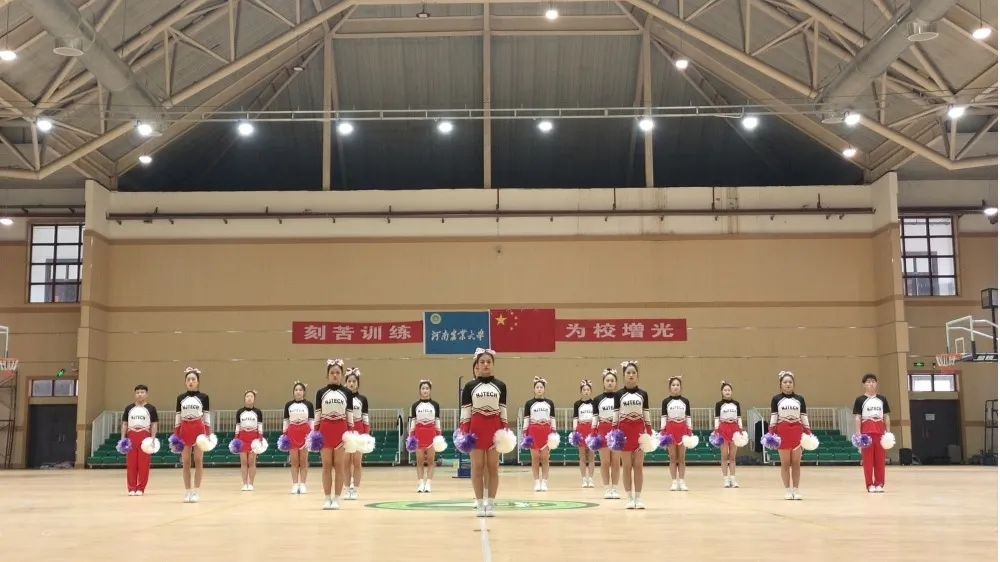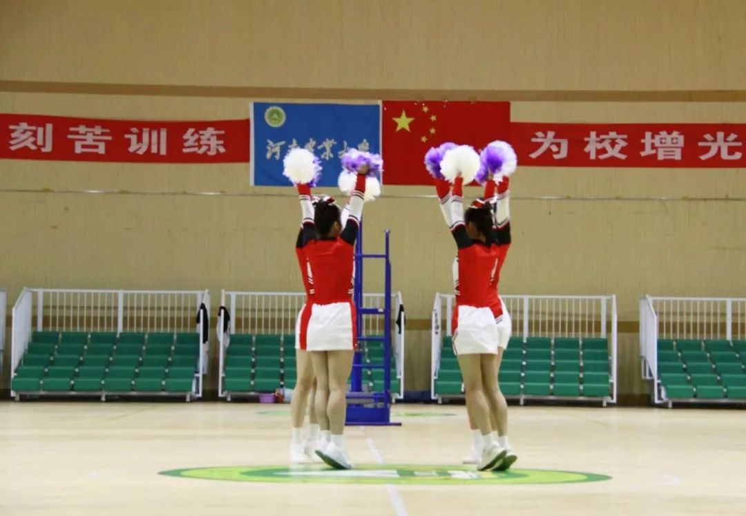 在老师的指导下,队员们手臂转起,步伐向前,花球挥动,汗水挥洒,卡的是共同的节拍,撒的是共同的汗水!