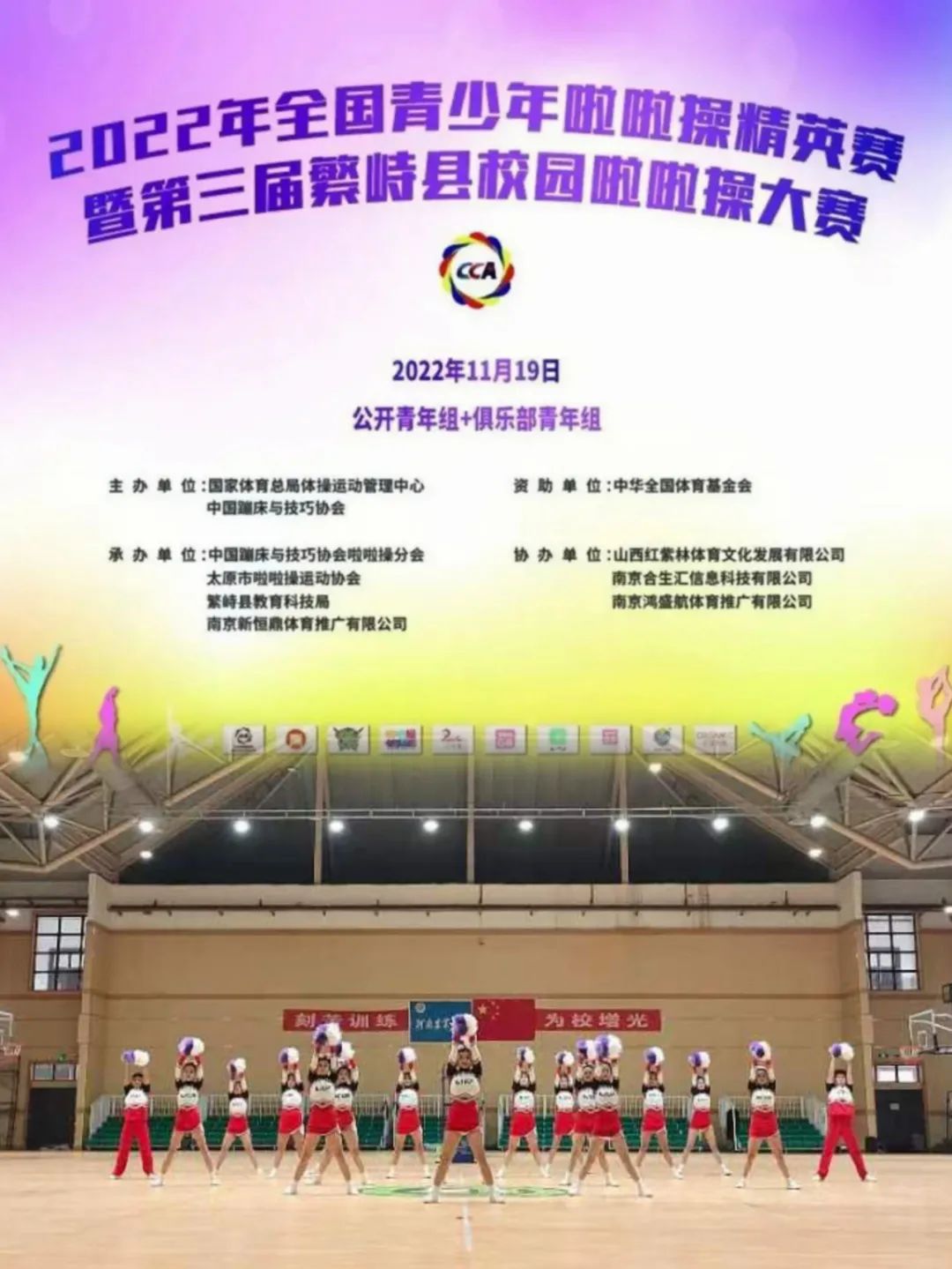 赛场上,各代表队身着整齐的服饰依次上场。伴随着激昂动感的音乐旋律,运动员们挥舞着手中的花球跳动起来,动作整齐划一,笑容自信爽朗,不断变换方阵,配合动感十足的旋律,把青春的积极向上、健康阳光演绎得淋漓尽致,展现了啦啦操独有的运动之美,也集中体现了团结协作、整齐划一、相互配合的团队精神,队员们用朝气蓬勃的笑容和曼妙的舞姿向大家展示着青春应有的风采。赛事还通过直播平台进行直播,备受社会关注。