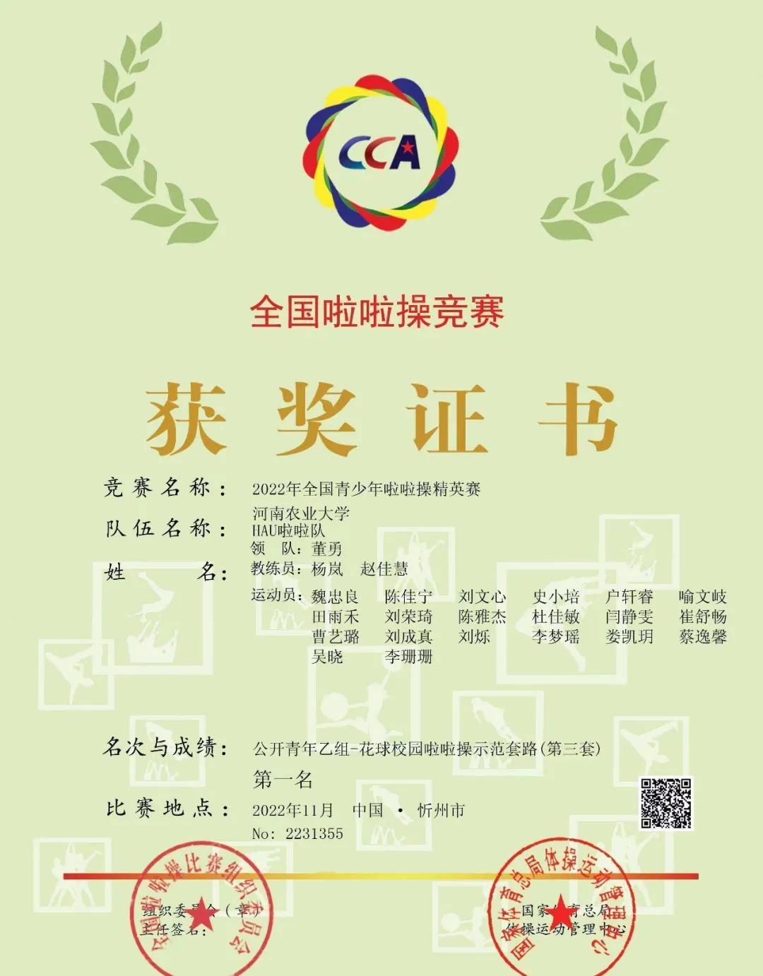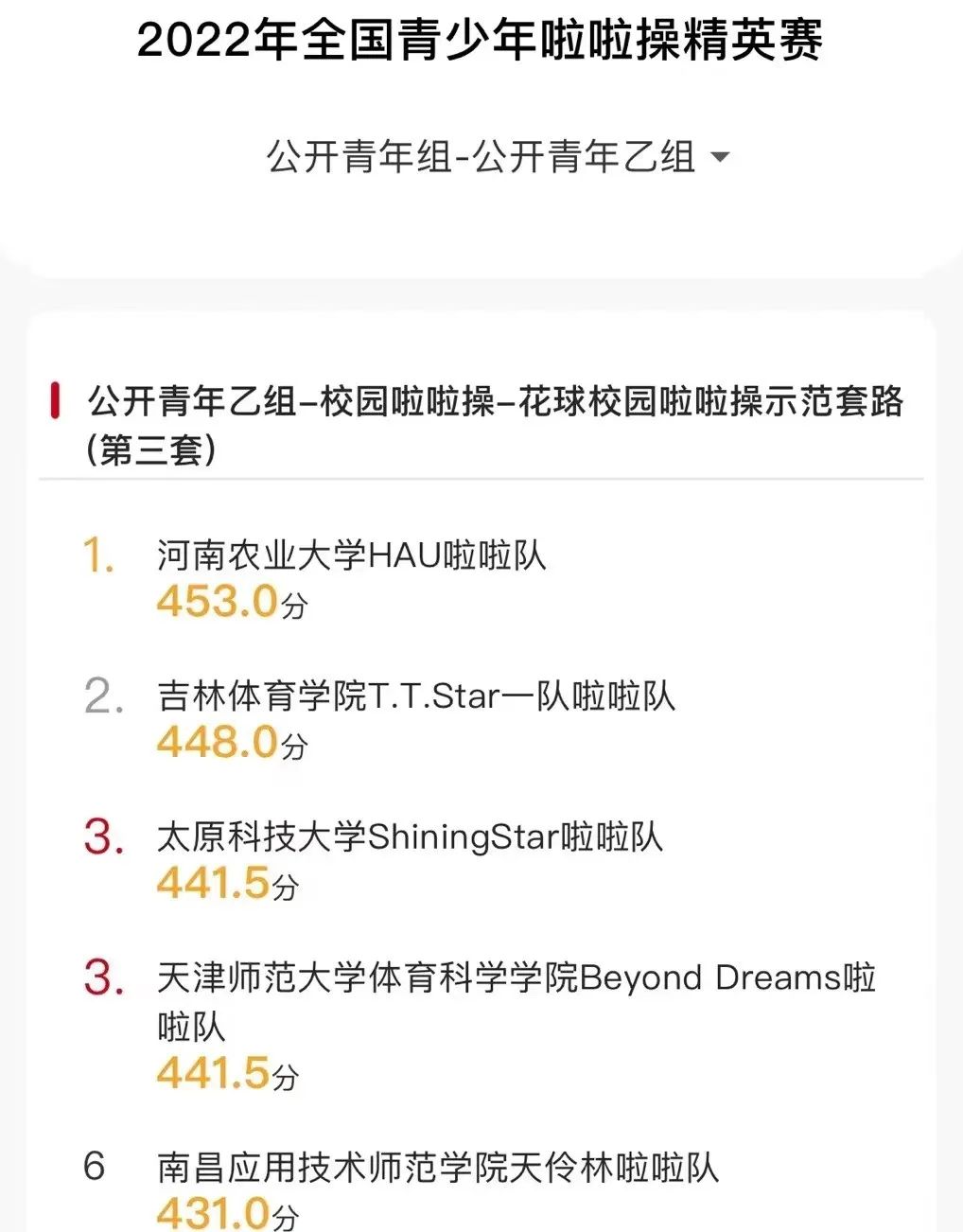 经过紧张激烈的角逐,博彩游戏 在此次比赛中取得公开青年乙组-校园啦啦操-花球校园啦啦操示范套路(第三套)第一名。此次获奖,离不开博彩游戏 领导的大力支持和老师们的悉心指导,也是啦啦操队员们共同努力的结果!啦啦操代表队表现出不畏艰苦、精益求精、团结拼搏、永争第一的精神,体现出了新时代大学生的青春风采。相信他们能站在更高更大的领奖台上!