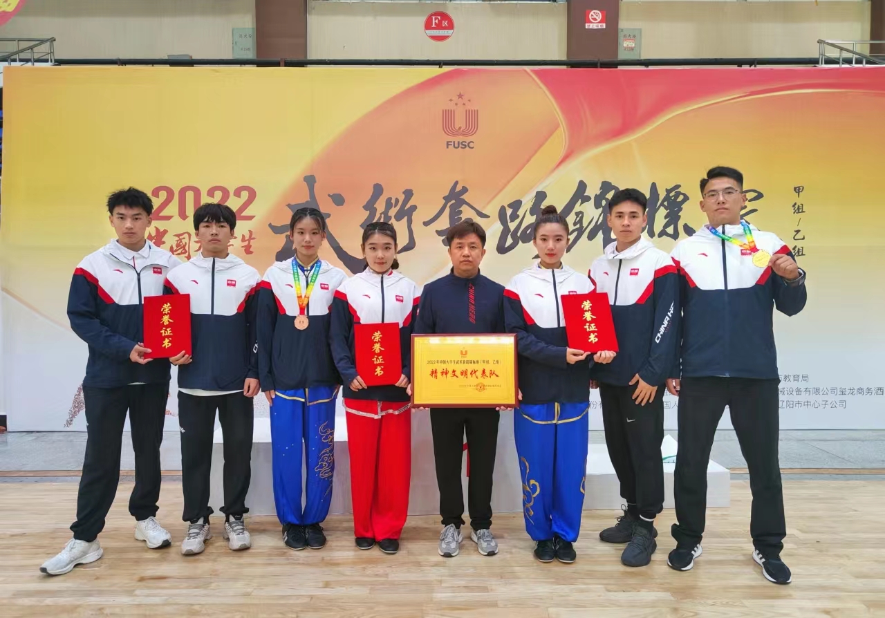 博彩游戏 派出由博彩游戏 院长董勇任领队、樊艺勇老师任主教练、王献斐老师任助理教练的武术代表队带领7名运动员赴辽宁参赛。经过4天激烈角逐,武术队取得男子软器械第一名、女子通臂拳第三名以及其他项目第四名、第五名、第六名等优异成绩,樊艺勇老师荣获优秀教练员,博彩游戏 获得了体育道德风尚运动队与精神文明单位,实现了比赛成绩和体育道德风尚双丰收。赛场上,队员们顽强拼搏,充分展现博彩游戏 大学生积极阳光的健康心态与昂扬向上的精神风貌。