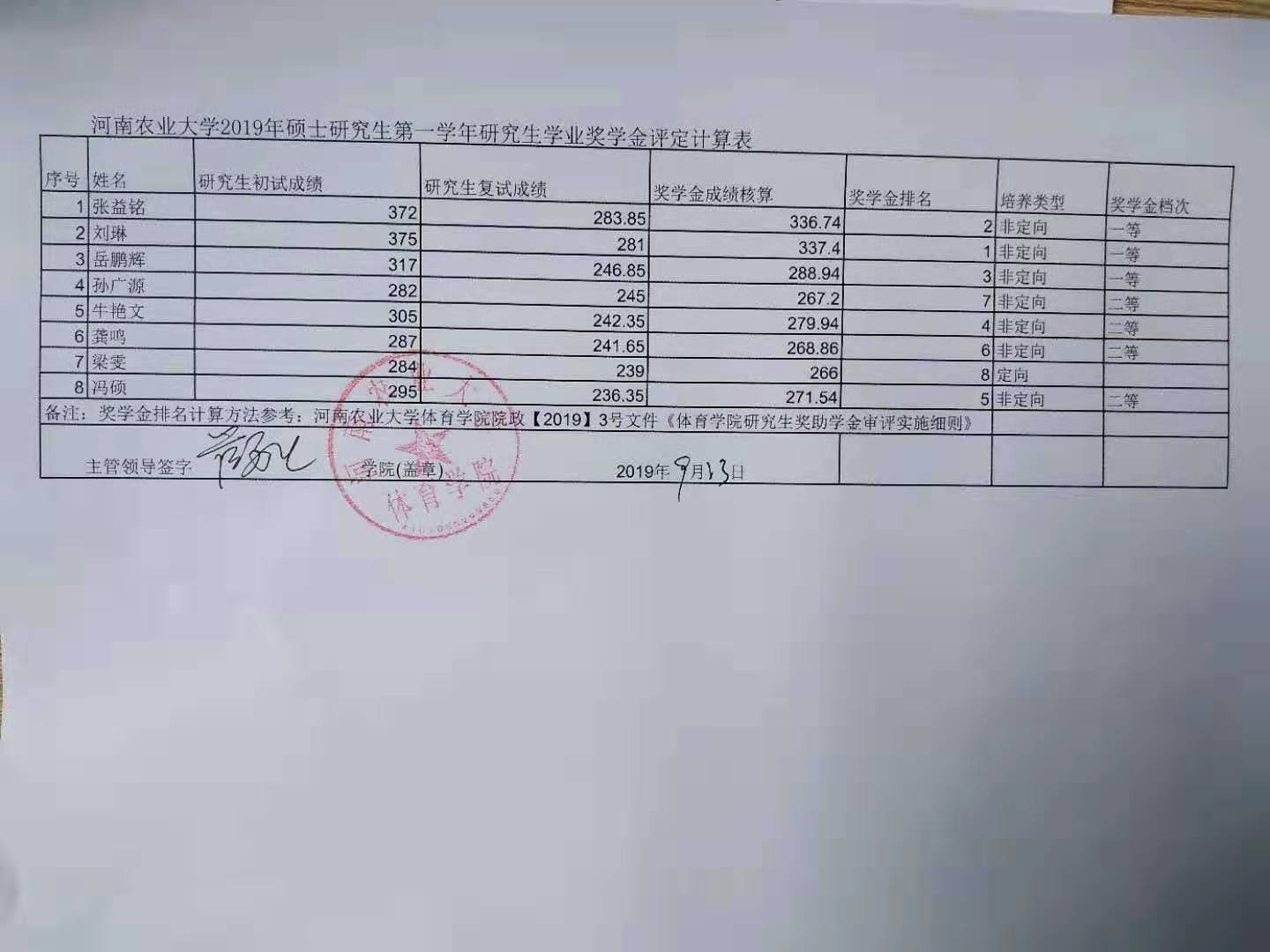博彩游戏 2019年硕士研究生第一学年研究生学业奖学金评定计算表