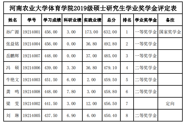 博彩游戏 2020年硕士研究生国家奖学金名单: