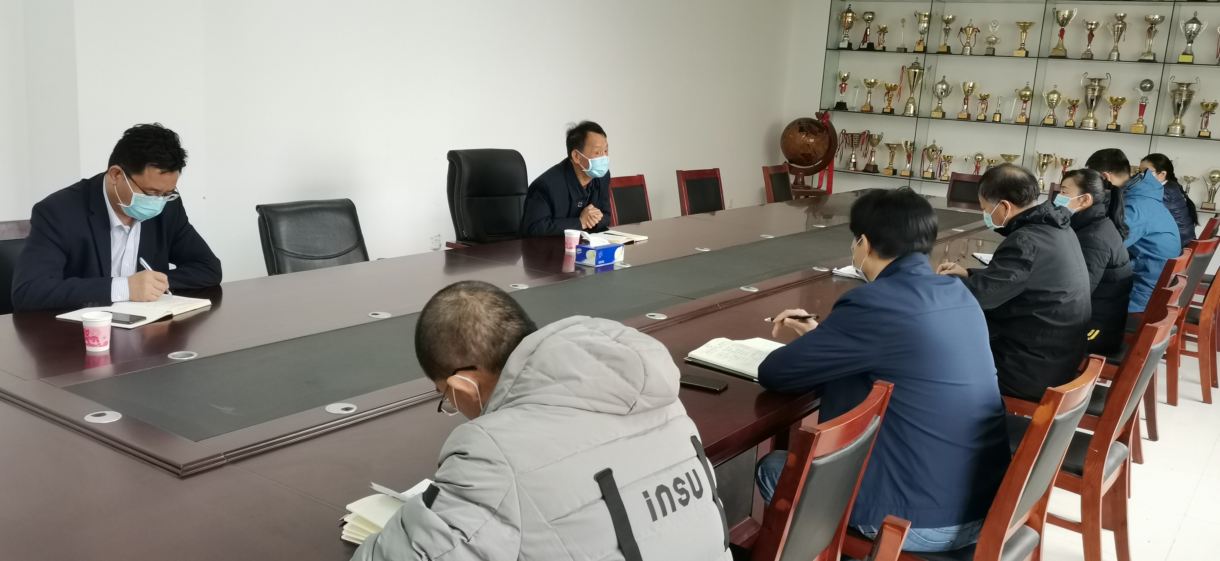 防疫物资保障和场馆维护进行详细汇报。与会人员结合本岗位工作,对疫情期间分管工作及复学后的工作部署做了汇报。