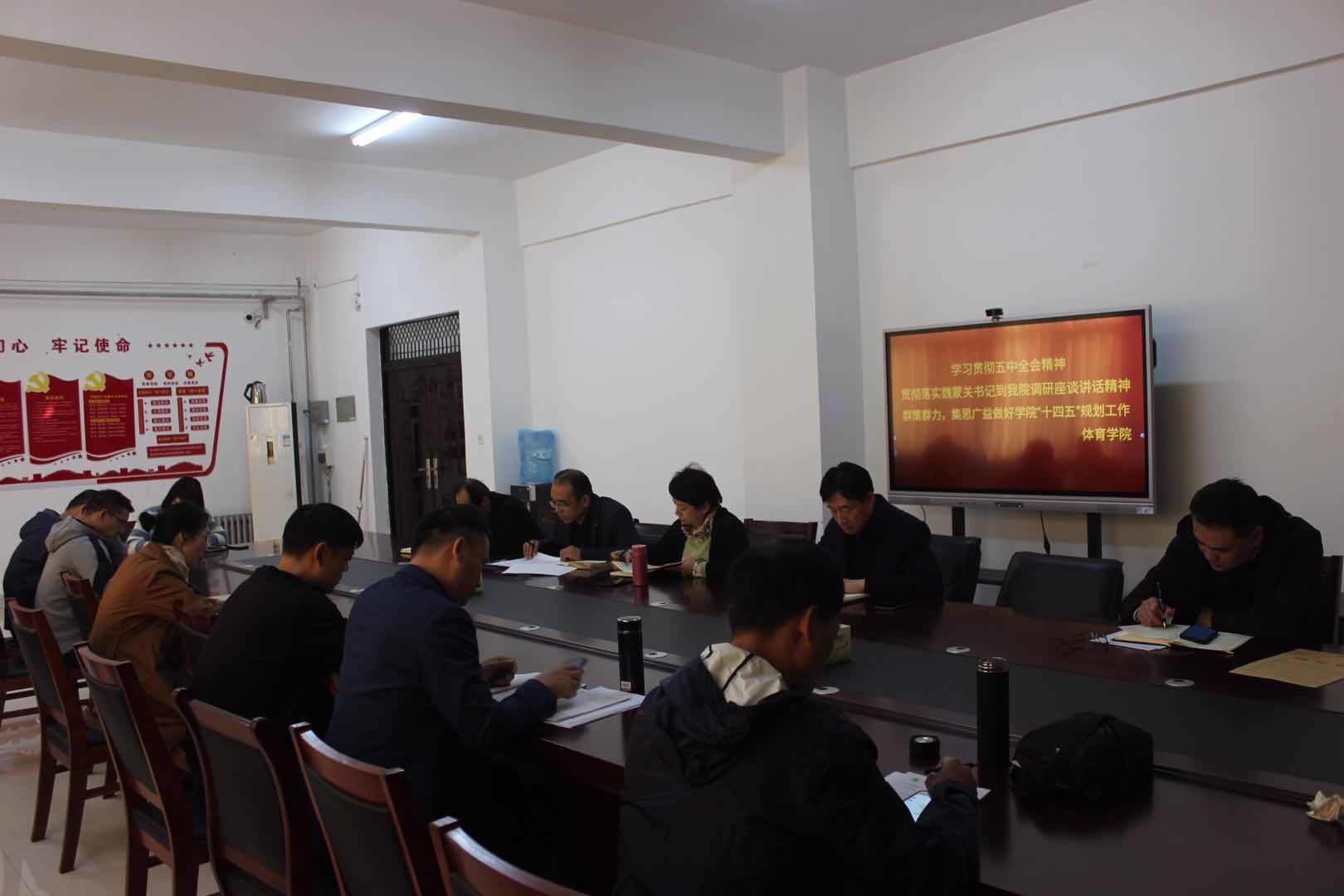 十四五发展规划的编制工作。二是凝聚力量,在更高水平上谋划发展。要进一步激发全院师生干事创业的热情,不断提升专业建设水平,提高人才培养质量,为建设文化强国,教育强国,人才强国,体育强国作出更多贡献。三是理清思路,在更高起点上续写辉煌。全面落实立德树人根本任务,将体育资源优势充分融入思想道德教育、文化知识教育、社会实践教育各环节,为全面建设社会主义现代化国家新征程提供源源不竭的人才支持。