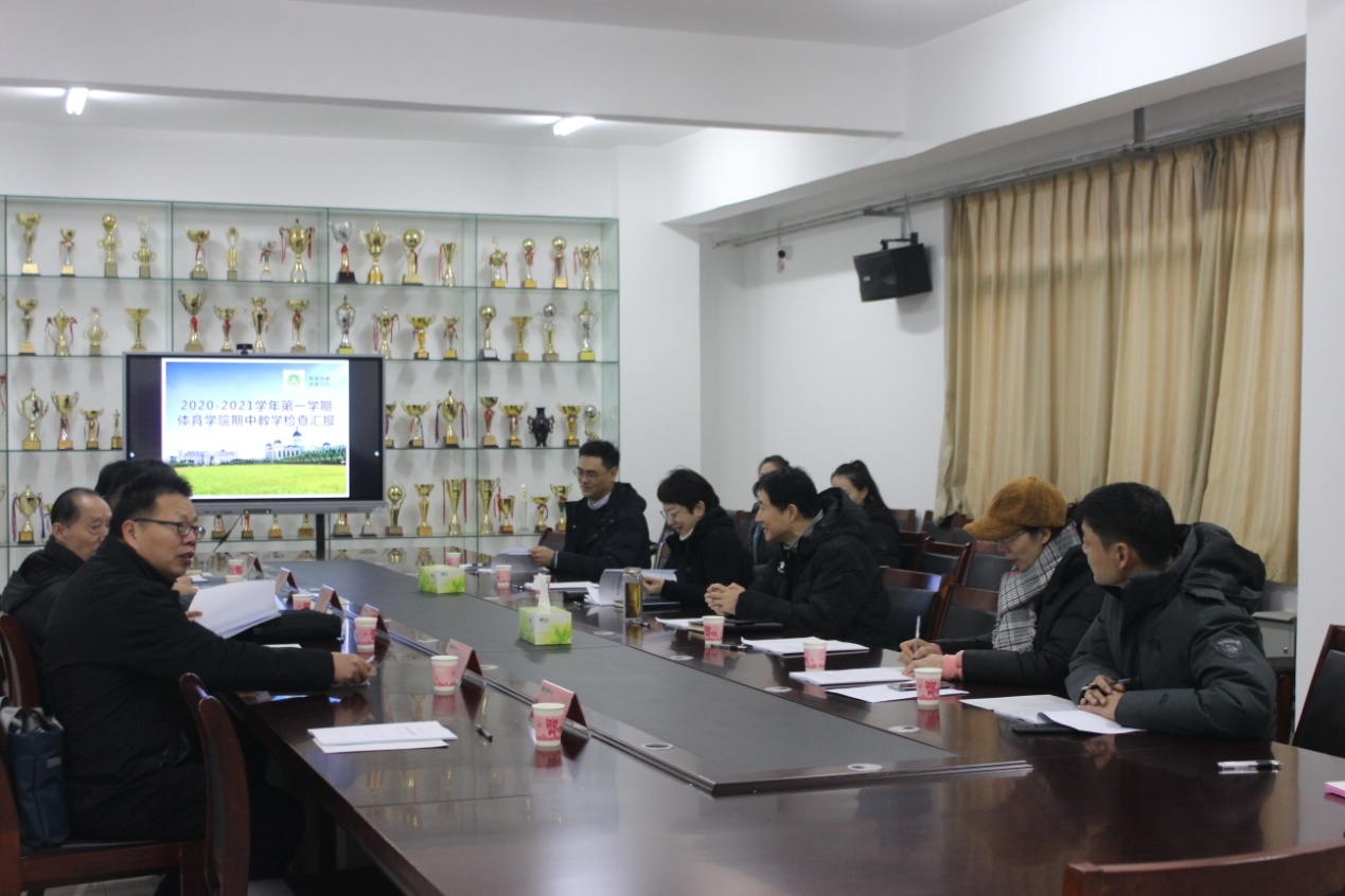 12月8日上午,博彩游戏 期中检查组在教务处副处长王金铎、教学督导夏百根组长的带领下,检查组成员文法博彩游戏 副院长杨红朝院长、外语博彩游戏 副院长张卫东院长、教务处赵鹏飞老师来到博彩游戏 进行期中检查工作。博彩游戏 负责人向全体检查组成员就博彩游戏 教学基本情况、专业建设、课程建设情况、基层教学组织建设情况、教授上课情况以及实践教学情况做出汇报。随后,检查组成员王金铎处长、杨红朝院长与博彩游戏 教师开展教师座谈会;检查组成员张卫东院长、赵鹏飞老师与博彩游戏 部分学生开展学生座谈会。夏百根老师对2020届学士学位论文、期末考试试卷以及青年教师教案进行审查。检查组成员王金铎处长深入课堂,切实了解课堂授课情况,在博彩游戏 体育馆111教室开展了听课看课活动 。