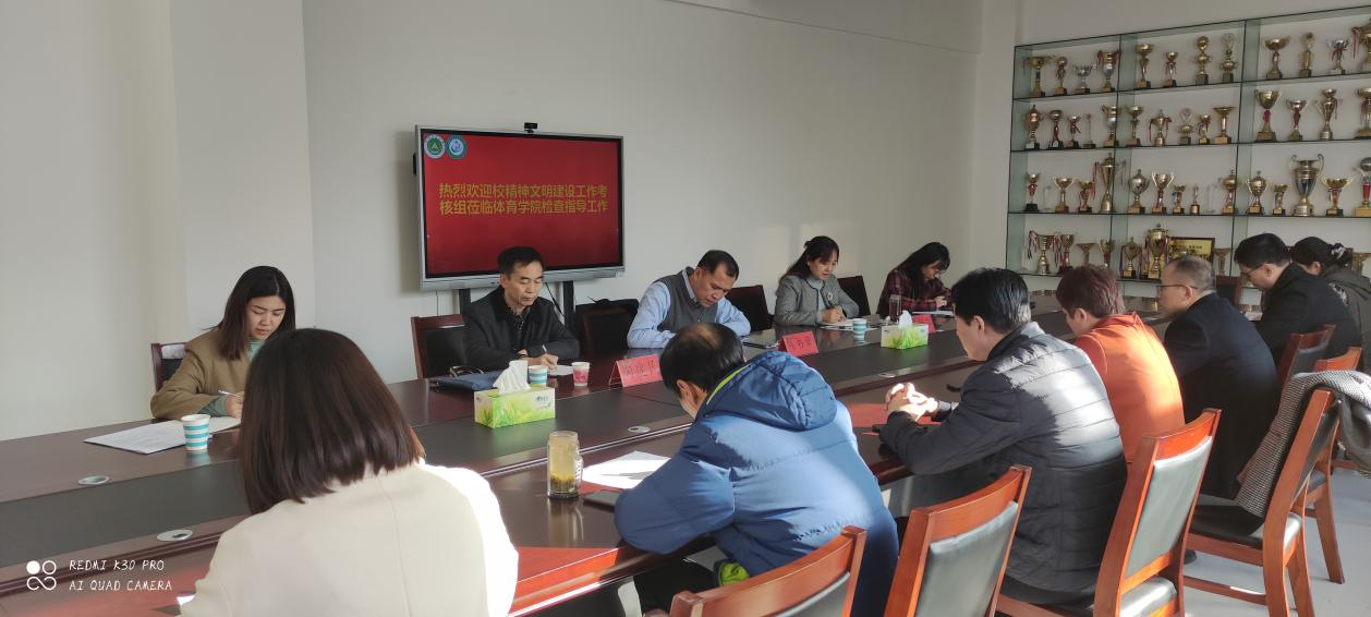 博彩游戏 党委书记吴旭静代表博彩游戏 向考核组一行的到来表示热烈欢迎,并从博彩游戏 一年来精神文明建设工作的主要内容、精神文明建设成果和特色做法等方面汇报了博彩游戏 精神文明建设工作情况,表示希望通过考核,更好地加强和推进博彩游戏 精神文明建设工作再上新台阶。院班子其他成员也基于博彩游戏 实际提出了精神文明建设工作中需要进一步完善提升的建议。