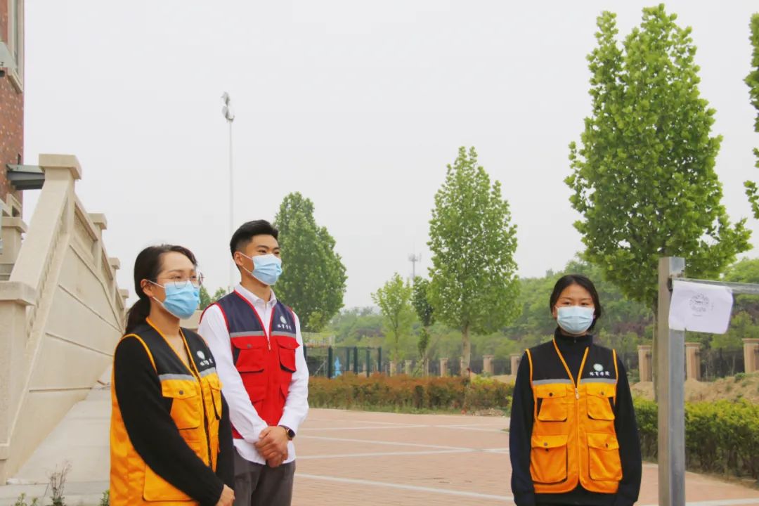 同时,在体育馆外,志愿者们耐心地为同学们指引排队路线。在志愿者们的引导下,师生们保持两米间隔,不扎堆、不聚集、有序流动,保证了核酸检测工作有条不紊地进行。