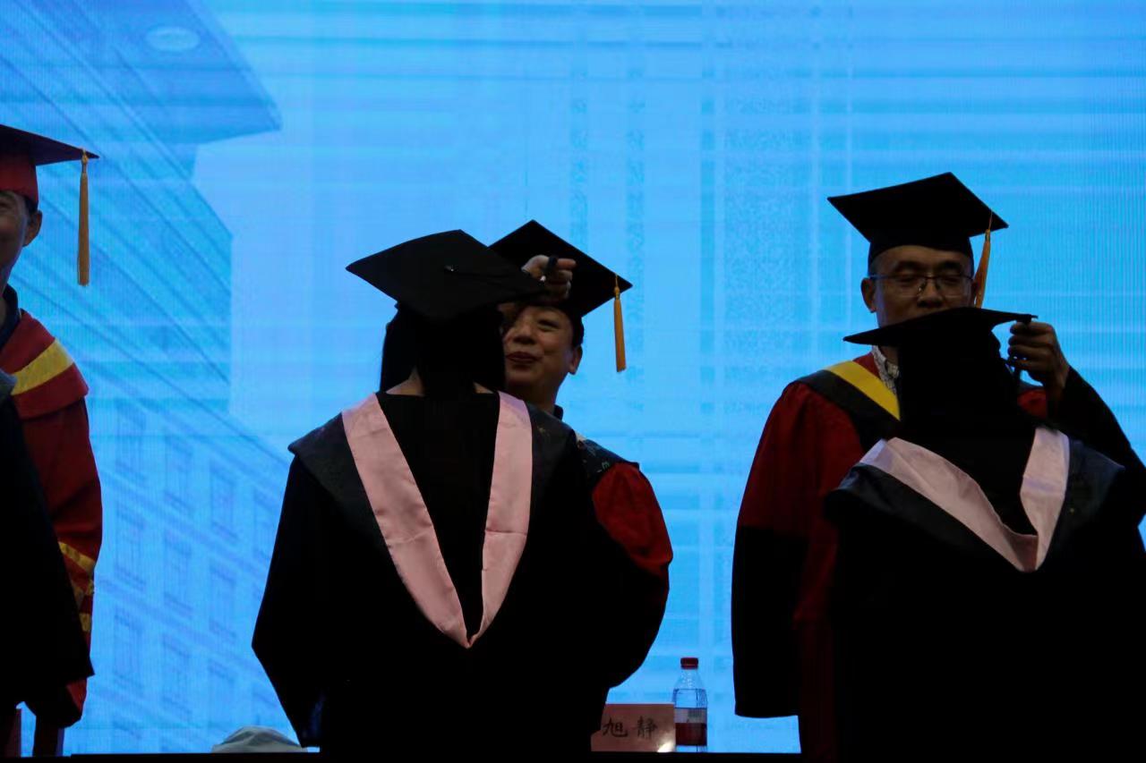 学位评定委员会成员为毕业生一一援正流苏、颁发学士学位证书,并合影留念。