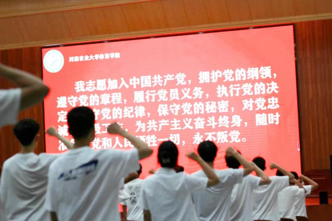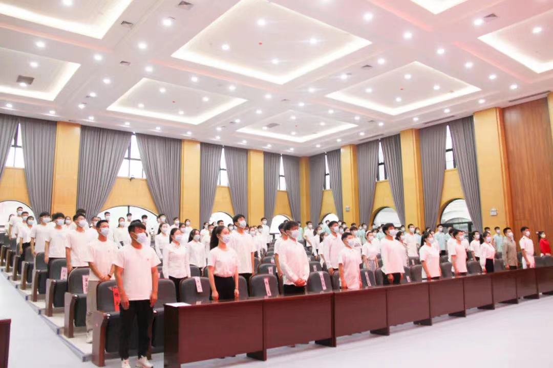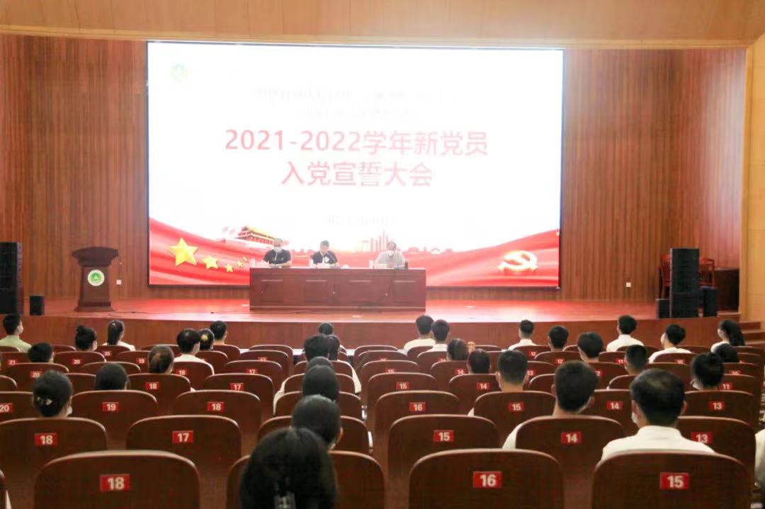 在龙子湖校区图书馆一楼报告厅隆重举行“明德自强庆校百廿,砥砺前行迎二十大”2021—2022学年新党员入党宣誓大会。博彩游戏