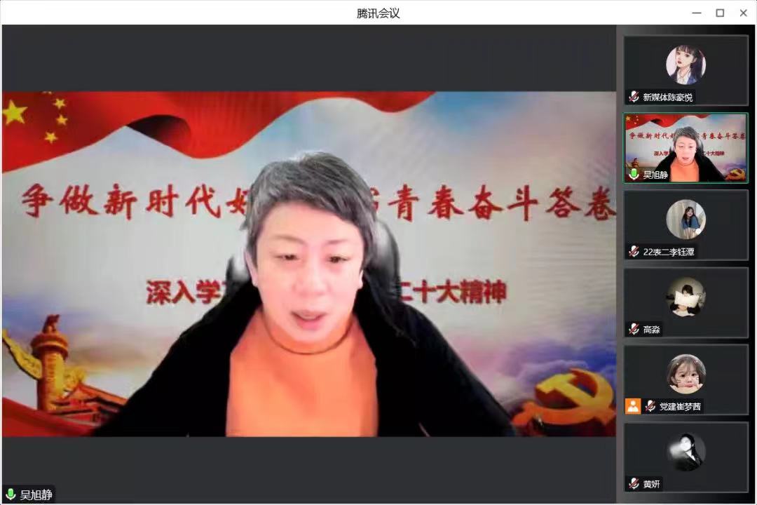 党委书记吴旭静在腾讯会议为体院入党积极分子开展了题为《争做新时代好青年 书写青春奋斗答卷》的专题宣讲。