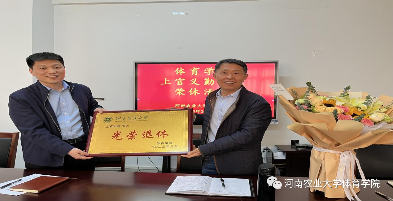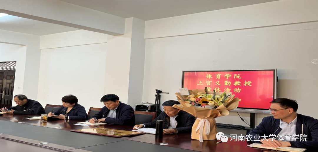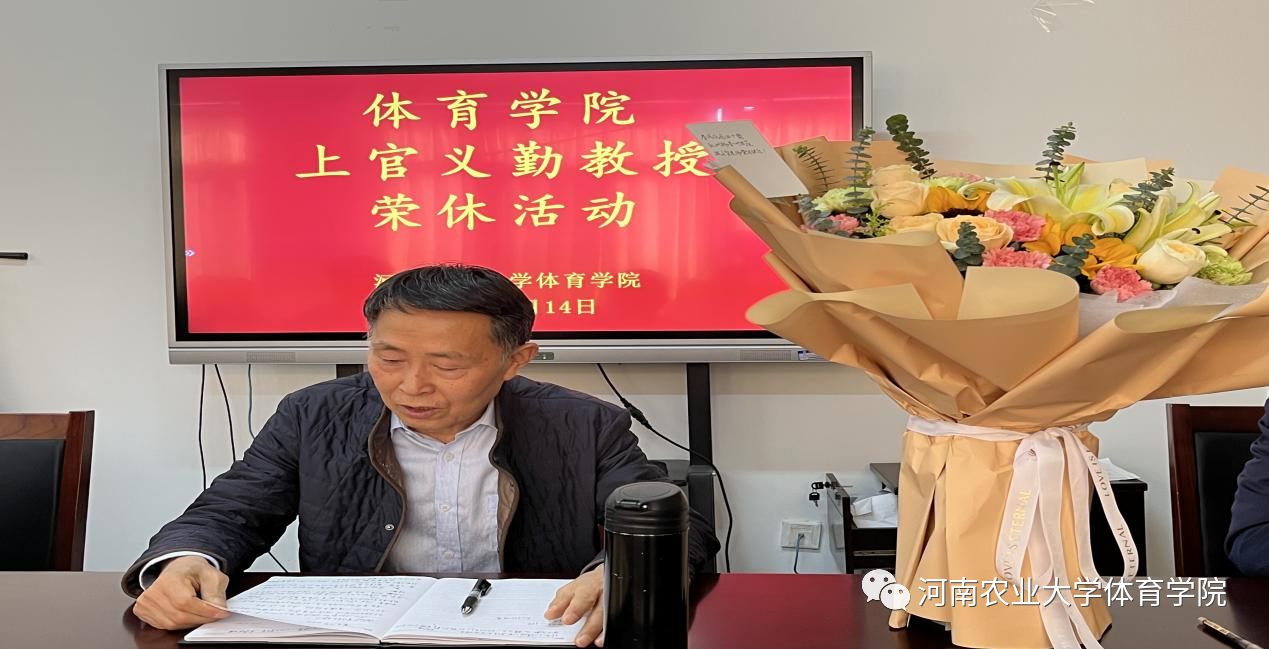 致辞并为上官义勤教授颁发了荣誉证书并送上献花,表达了诚挚的敬意和祝福。随后,上官义勤教授发表了从教四十年感言。他回忆起在体院工作的点点滴滴,言谈中饱含着爱党爱校的情怀和对教育事业的忠诚与热爱。