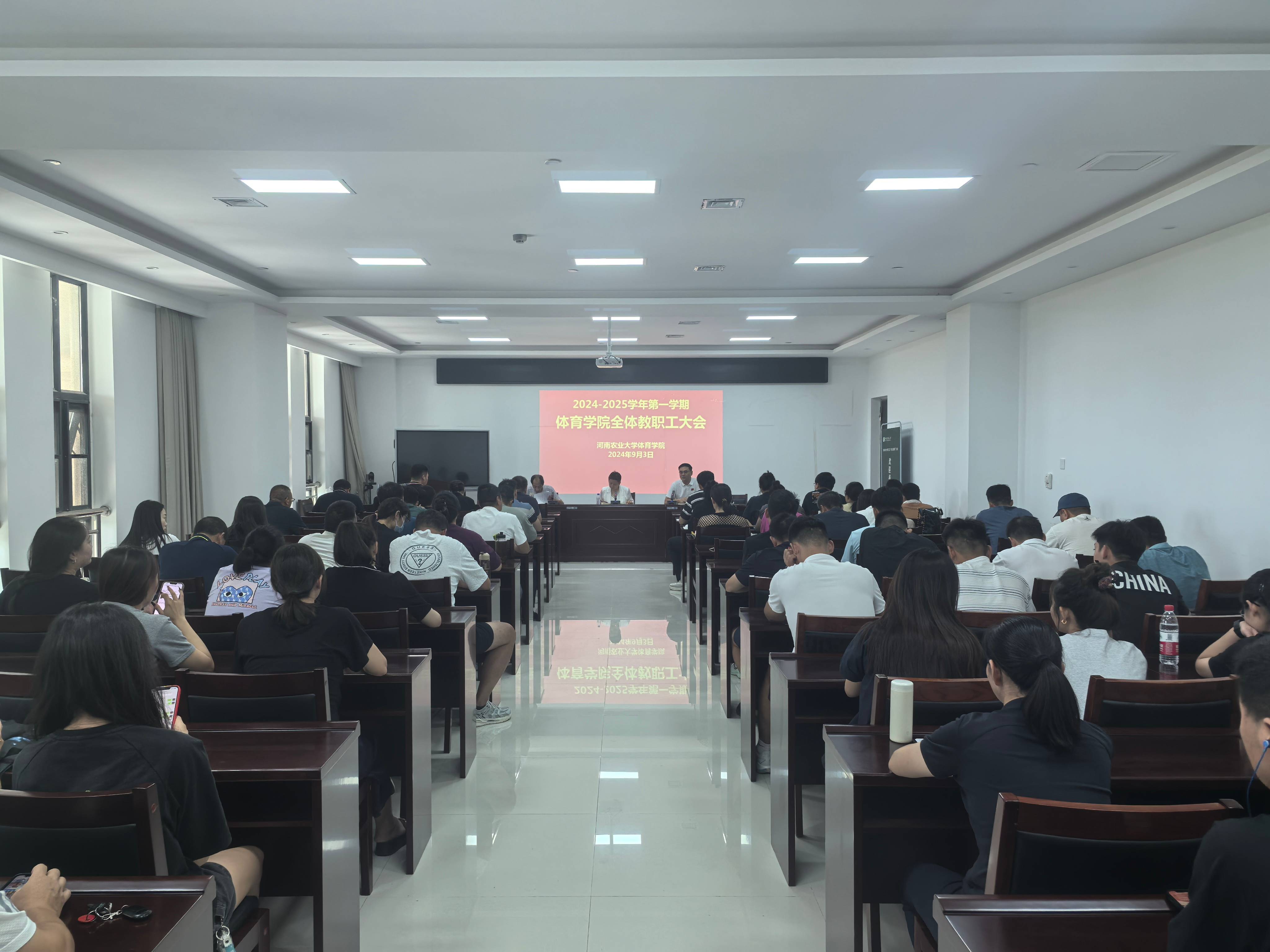 暑假期间的工作进行了总结回顾,对新学期的各项工作作出安排部署。并对课堂创新大赛以及毕业生实习等相关工作进行了详细安排,要求进一步推进体苑大讲堂活动的开展,形成良好的学术氛围。