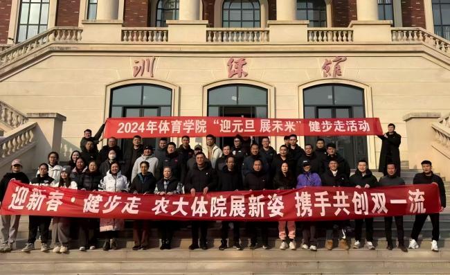 于龙子湖校区田径场举办“农大体院展新姿 携手共创双一流”迎新春健步走活动,全体教职工参加了此次活动。