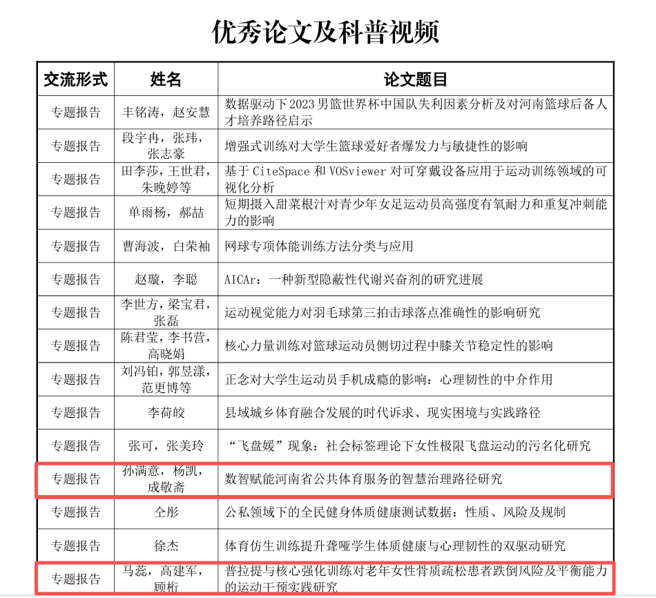 博彩游戏 教师以及研究生获第一届河南省体育科学大会优秀论文