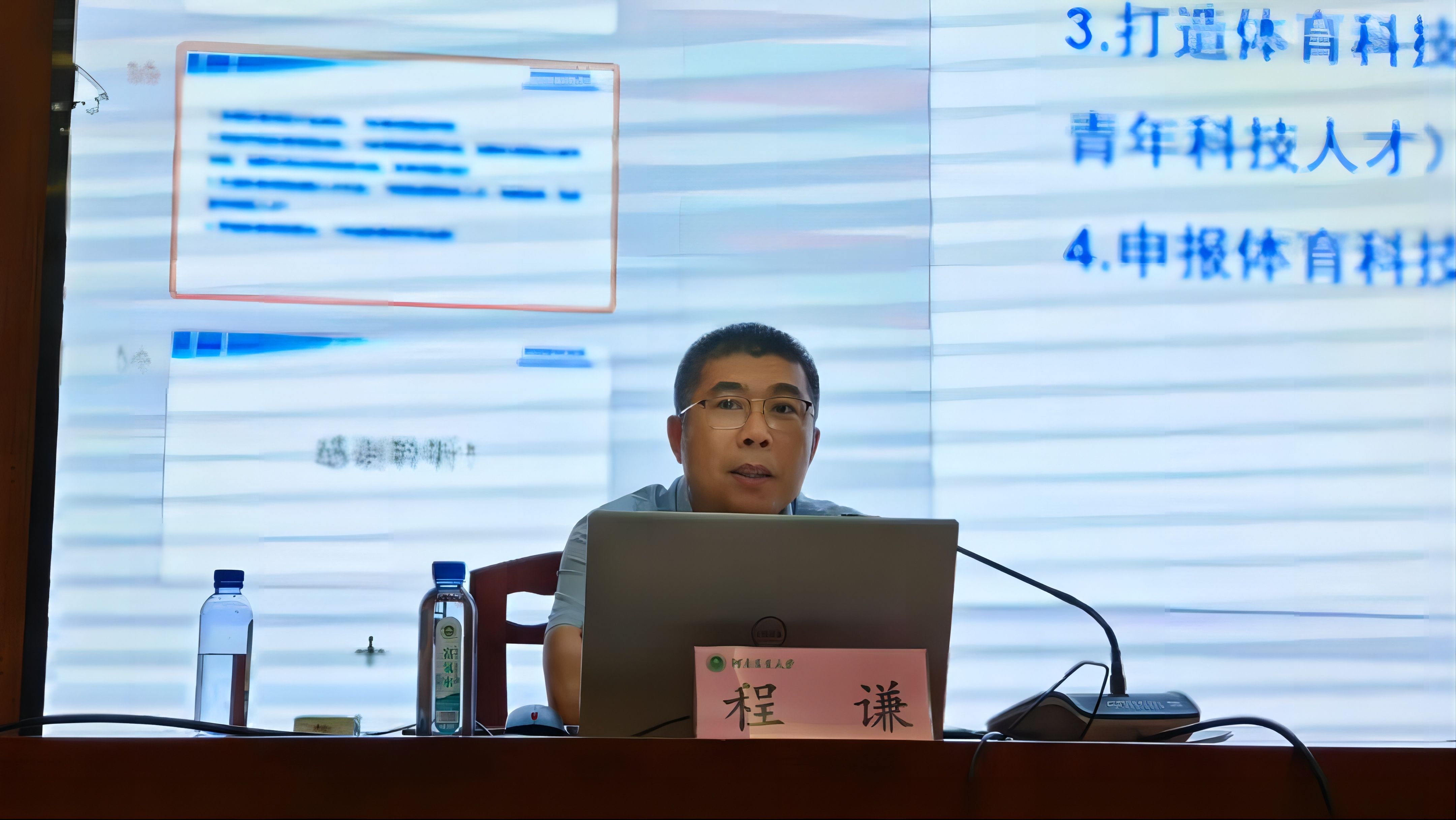 (通讯员/图 黄妍)为响应推动体育强国建设的号召,博彩游戏 于6月13日15:00在龙子湖校区图书馆一楼报告厅开展科技创新助力体育强国建设学术报告会,国家体育总局科教司科技处处长程谦作为主讲嘉宾出席,博彩游戏 院长唐大鹏主持会议。