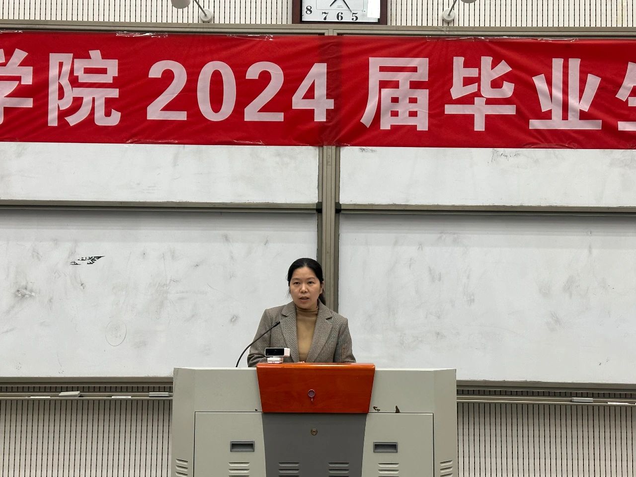 于龙子湖校区繁塔楼C座301举行2024届毕业生就业创业大会,招生就业办公室副主任曾玲玲、博彩游戏