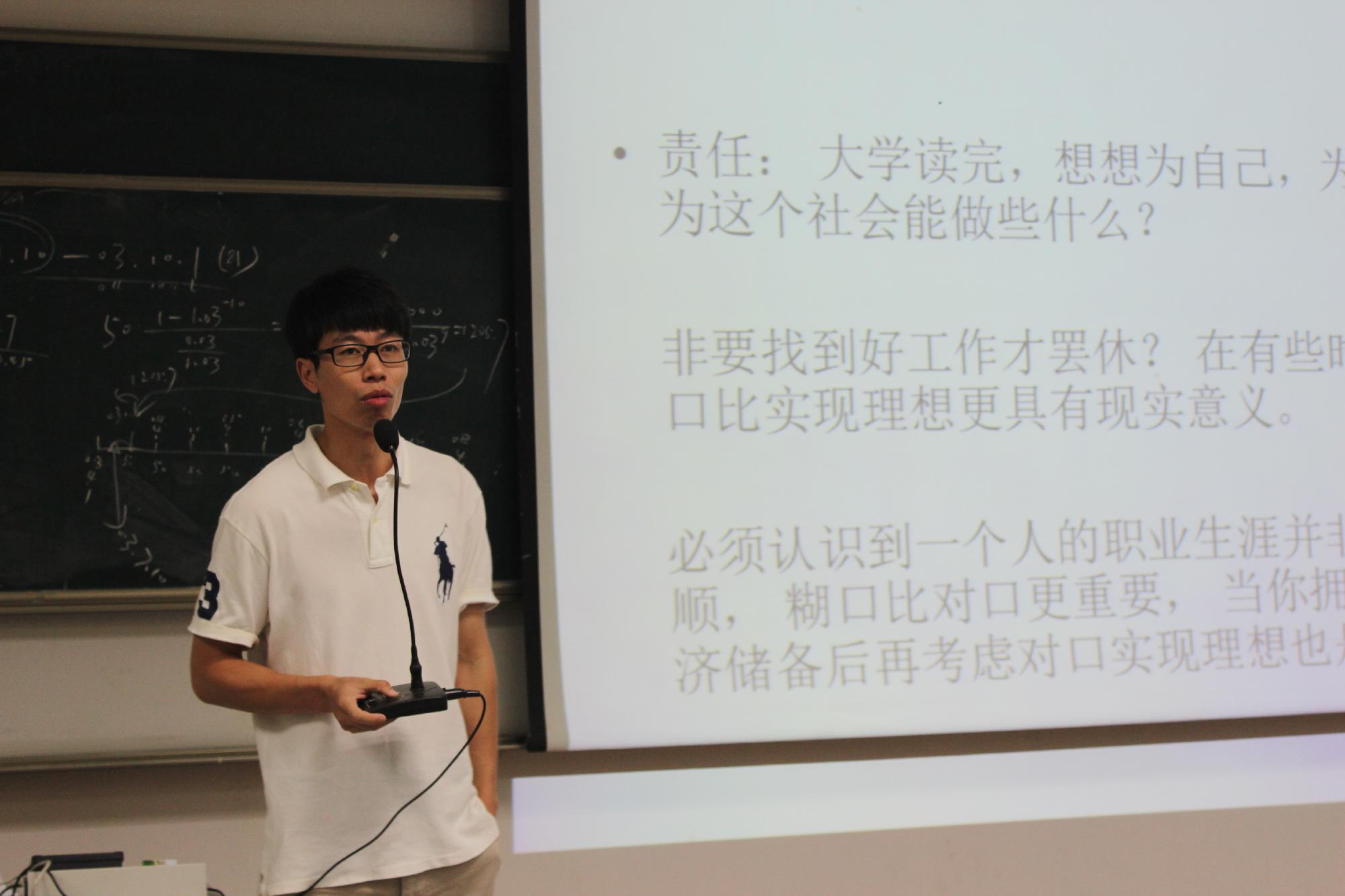 2014年9月 21日晚上6点半,博彩游戏 2014级研究生新老生见面会在博彩游戏 102教室隆重举行。此次见面会不仅请来了研二的学长学姐来分享他们在财大的学习和生活心得,同时准备了一些互动视频和游戏让研一新生在欢笑声中增进彼此的了解。首先,是博彩游戏 徐函...