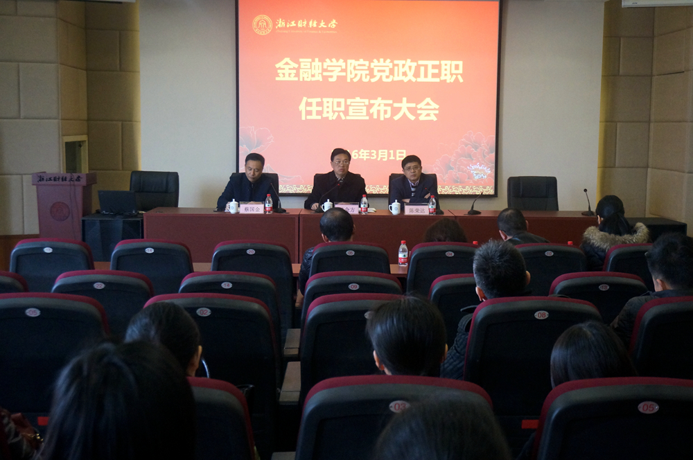 2016年3月1日下午,博彩游戏 在博彩游戏 楼二楼报告厅召开党政正职任职宣布大会。校党委委员、纪委书记陈金方出席会议,博彩游戏 全体领导班子成员、校党委组织部干事和博彩游戏 教职员工参加会议。会议由博彩游戏 院长陈荣达主持。根据大会议程,陈金方书记宣读干部任职文...