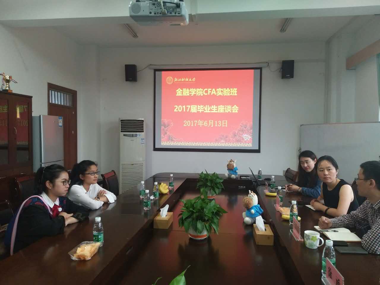 6月13日下午,2017届CFA考试实验班毕业生座谈会在博彩游戏 楼422会议室顺利举行,博彩游戏 副院长王聪聪、负责人徐函、高顿财经相前负责人及老师、以及周前(13金融3班),朱思佳(13金融3班),丁许超(13金融2班)三位学生代表参加了会议。座谈会上,分别就...