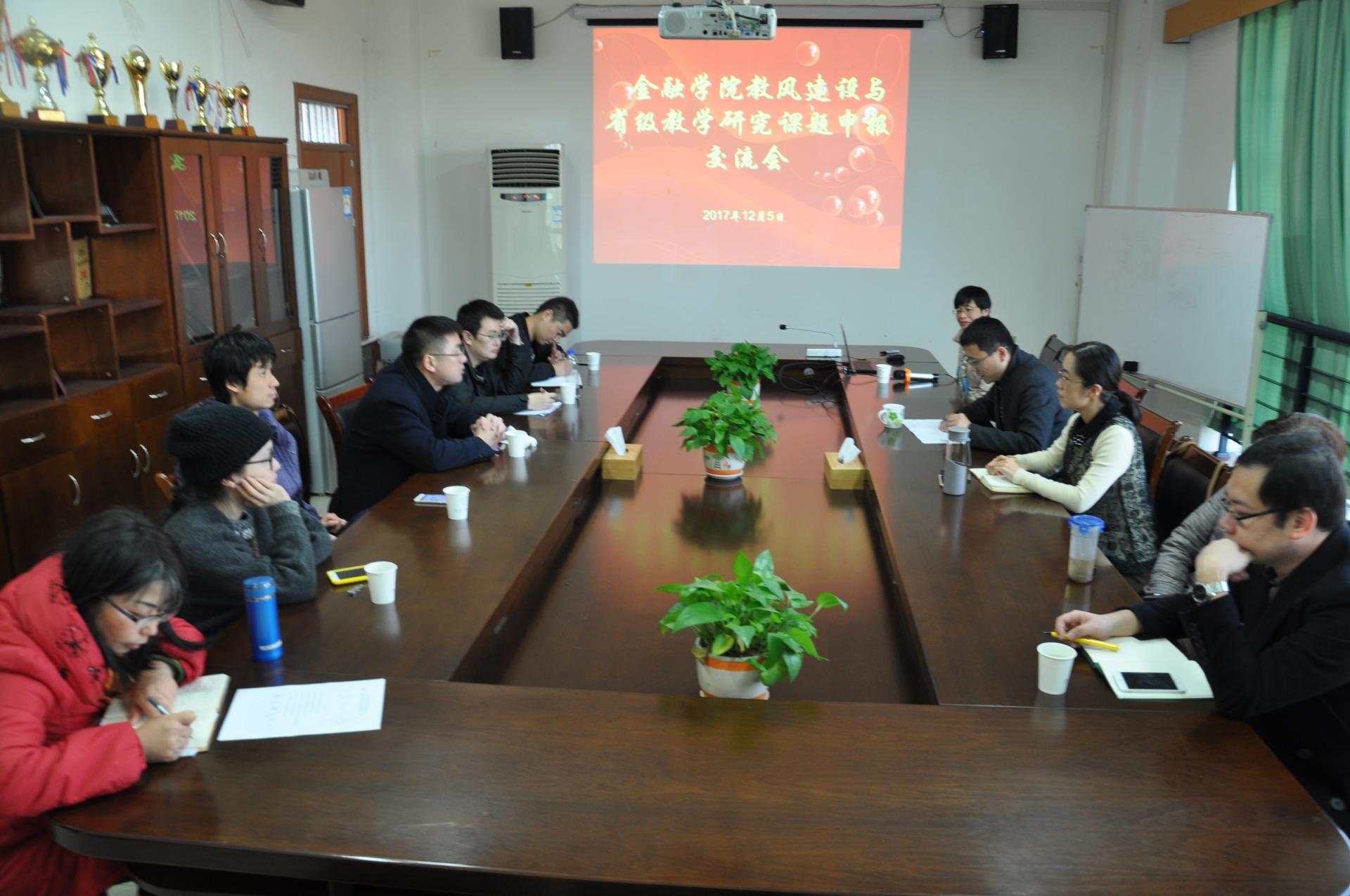 12月5日下午,博彩游戏 教风建设与省级教学研究课题申报交流会在博彩游戏 楼422会议室召开,博彩游戏 王聪聪副院长传达了博彩游戏 教风建设工作推进会议的精神,徐敏副教授、耿中元教授、鲁莹博士和朱卉博士与大家分享了课改课题的相关经验。博彩游戏 多位专业教师出席...