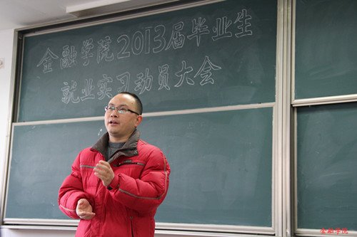 12月12日上午8:30,当校园还沉浸在冬日早晨的清冷中,大四的同学就早早地踏进了博彩游戏 楼102教室,参加由党总支副书记陈伟老师和辅导员尹怀玉老师主讲的博彩游戏 2013届毕业生就业实习动员大会。 大会上座无虚席,同学们高度的注意力简直触手可及。经过将近...