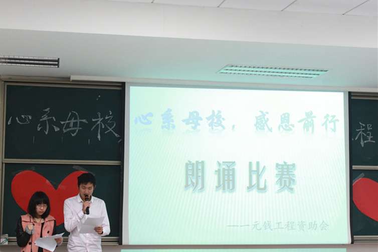 11月25日晚上6:30 ,在博彩游戏 楼102多媒体教室,由13金融三、四班以及信用管理班共同举办的团日活动之“心系母校,感恩前行”朗诵比赛暨一元钱工程资助会隆重举行。到场的嘉宾有学生辅导员尹怀玉老师,13金融三班班导李莉、董宇科,13金融四班班导童非凡,...
