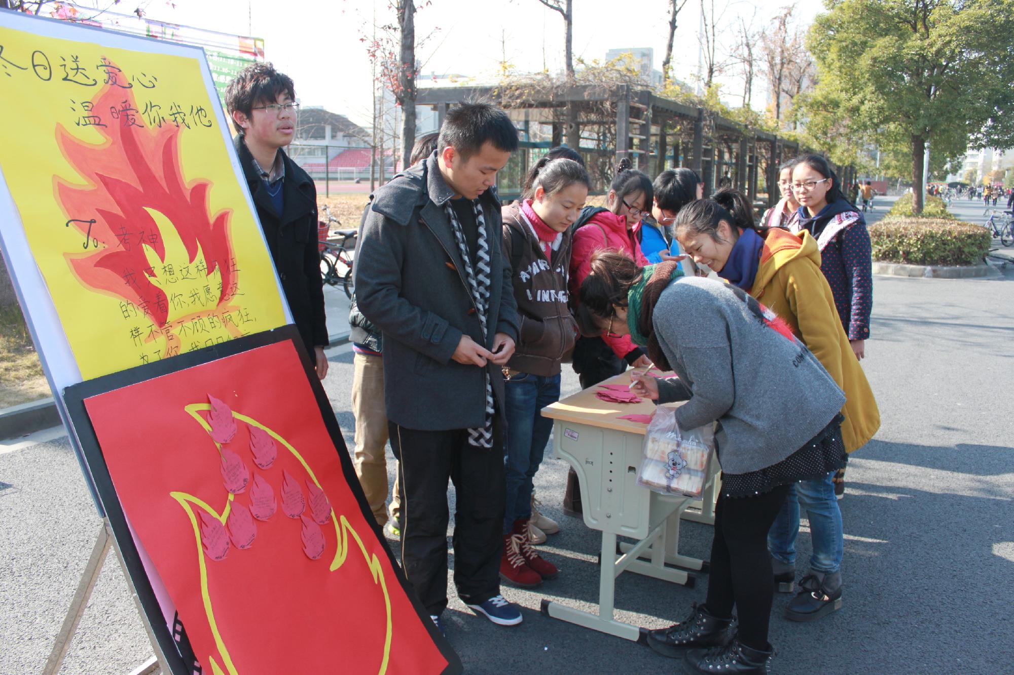 12月10日11点30分,由博彩游戏 团委学生会组织部主办的“冬日送爱心,温暖你我他”的一元钱工程活动在文化长廊顺利开展。为增进同学间的友谊,同时助力“一元钱”工程,组织部的成员将亲手制作的卡片进行义卖,同学们通过募捐一元钱获得一张卡片并可写下自...